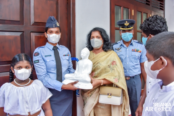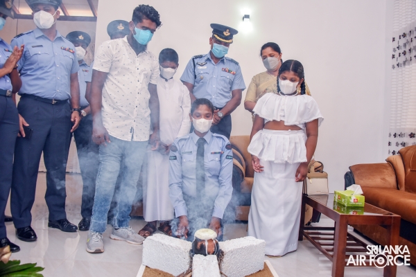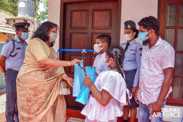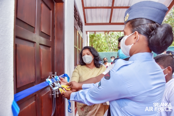 In parallel to the celebrations of the International Women's Day, SLAF Seva Vanitha Unit kicked off series of events commencing from a house warming ceremony of newly constructed house for Leading Aircraftwoman De Silva DTD. The House Warming Ceremony was held today (07 March 2022) at Samanala Uyana, Kalupe, Hikkaduwa with the participation of the Chairperson SLAF Seva Vanitha Unit, Mrs. Charmini Pathirana.