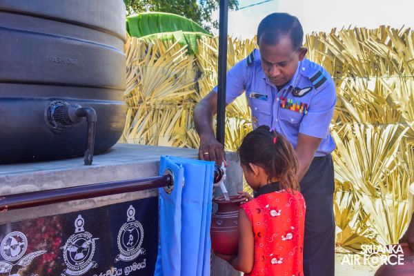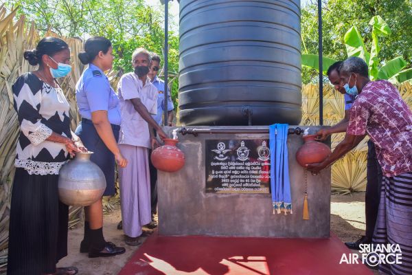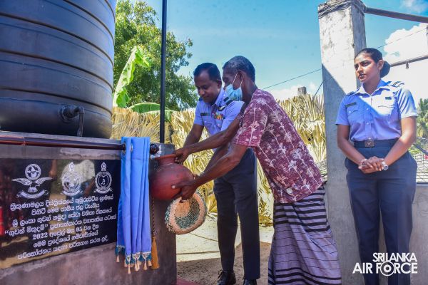 The 31st phase of “Guwan Mithudam” project was successfully concluded at the “Vidyavimukti Temple Kumburupitiya” today (05 April 2022) by SLAF Academy China Bay under the guidance of the Chairperson Seva Vanitha Unit, Mrs. Charmini Pathirana. The water project was handed over to the residents of Kumburupitiya by the Acting Commandant, Air Commodore Chandima Alwis.