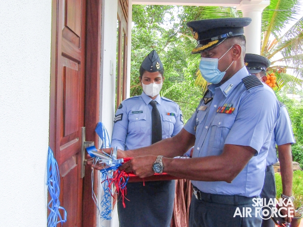 A house constructed by the SLAF Seva Vanitha Unit under guidance of the Chairperson of SLAF Seva Vanitha Unit, Mrs. Charmini Pathirana was handed over to the family of Flight Sergeant Lakmal KPR yesterday (08 April 2022).