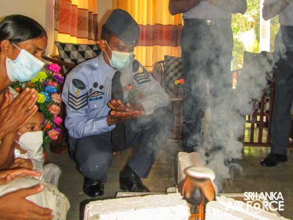 The Commanding Officer of SLAF Station Koggala and a limited number of officers and other ranks attended for the house warming ceremony.