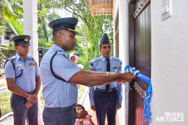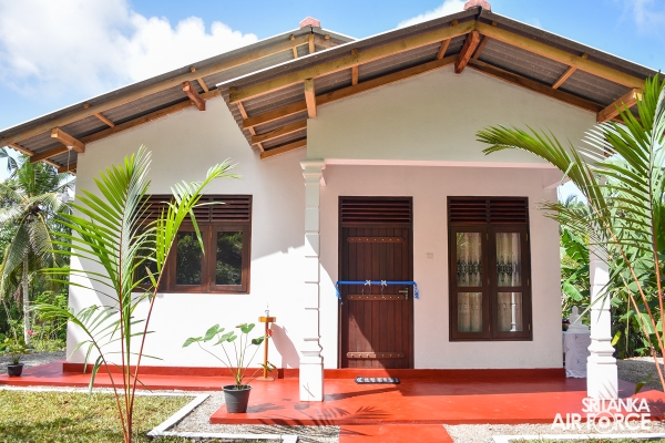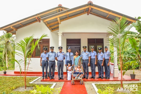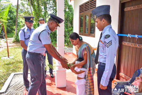 A house constructed under the guidance of the Chairperson SLAF Seva Vanitha Unit, Mrs. Charmini Pathirana was handed over to the family of Corporal Somarathne WGR yesterday (18 May 2022) by the Commanding Officer of SLAF Station Koggala, Group Captain Thilina Rajapaksha.