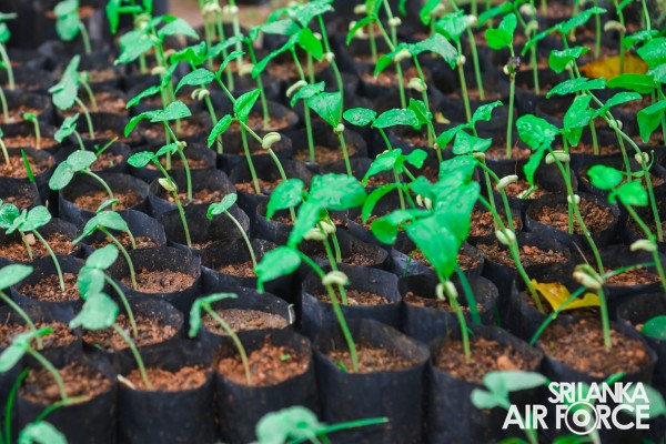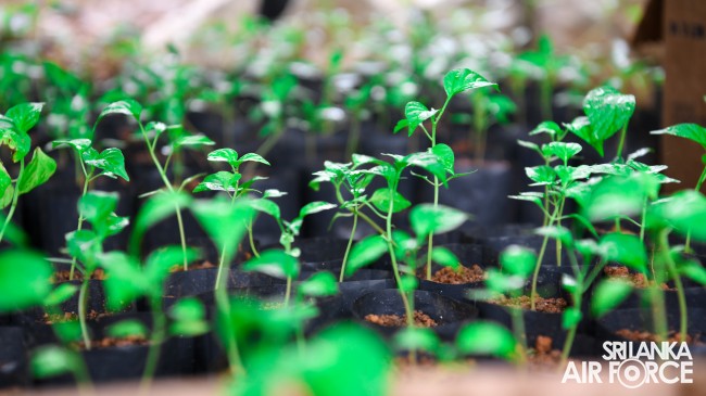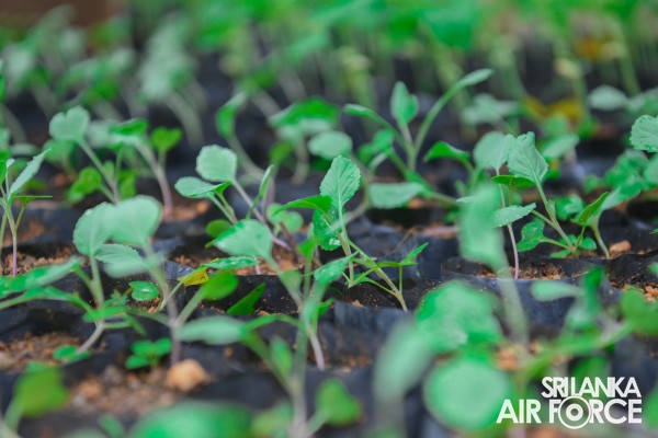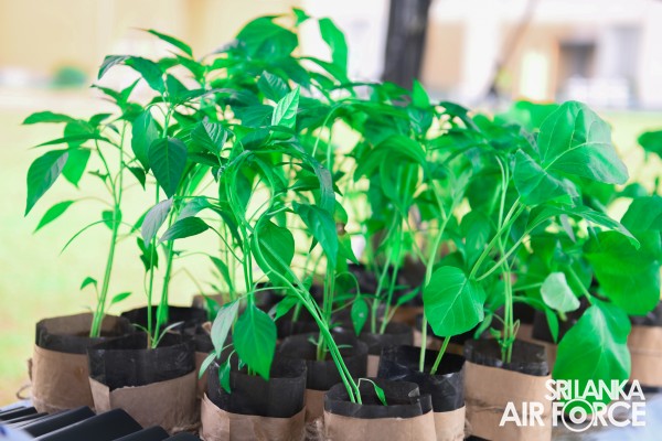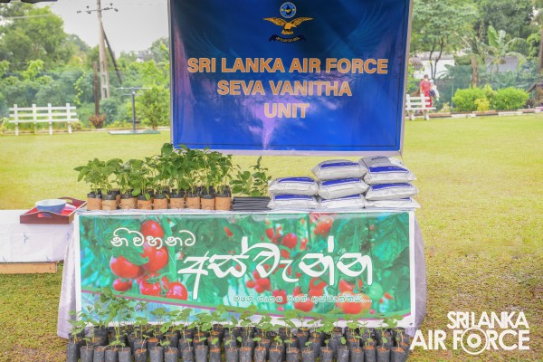 According to a concept of the Chairperson of the SLAF Seva Vanitha Unit, Mrs. Charmini Pathirana, the "NIWAHANATA ASWENNA" urban agriculture motivational programme was commenced at all Air Force Establishments today (16 June 2022). A vegetable plants donation ceremony was conducted at SLAF Guwanpura General Service Quarter’s premises and the event was graced by the Chairperson of the SLAF Seva Vanitha Unit.