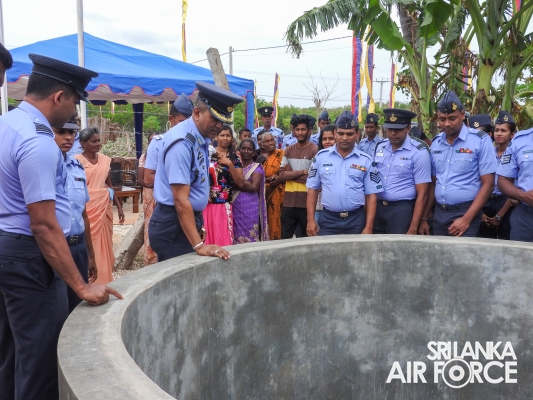 An infrastructure development project was executed to fulfil the requirement of clean water to utilize for the residents in Anthonypuram, Palaly North since they had faced numerous difficulties to obtain a clean water facility for washing and bathing purposes. The dilapidated well which is the main source of water was renovated by constructing separate bathing and washing areas. This project benefitted approximately 20 families in the area. The facility was handed over to the public by the Commanding Officer SLAF Station Palaly, Group Captian Vajira Senadheera.