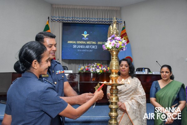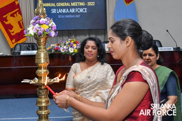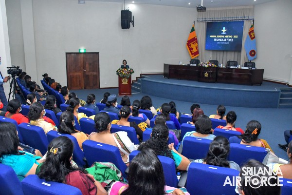 The Annual General Meeting (AGM) – 2022 of the SLAF Seva Vanitha Unit was held today (26 August 2022) at the Air Force Headquarters Auditorium. The AGM was chaired by the Chairperson of the SLAF Seva Vanitha Unit Mrs. Charmini Pathirana and was attended by its member spouses of the Air Force Board of Management, Presidents and the Officers-In-Charge of SLAF Academy, Bases and Stations together with Coordinators of the SLAF Seva Vanitha Unit.