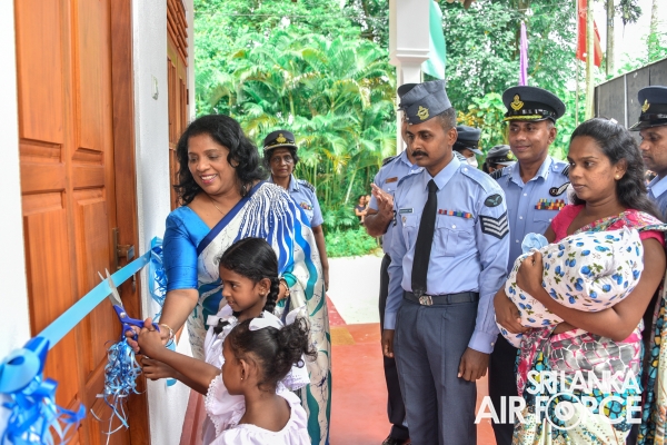 A house constructed by the SLAF Seva Vanitha Unit was handed over to Sergeant Karunathilake KMNS. The house warming ceremony was held yesterday (02 September 2022) at Kurunduwaththa Kadaweediya, Minuwangoda with the participation of the Chairperson of SLAF Seva Vanitha Unit, Mrs. Charmini Pathirana.