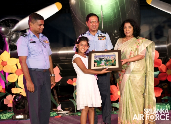 The Commander of the Air Force, Air Marshal Sudarshana Pathirana, awarded prizes and certificates to the winners during the SLAF’s "World Children’s Day" celebration at SLAF Base Rathmalana. A certificate was awarded to each contestant who participated in the competition in addition to the winners to recognize their valuable participation.