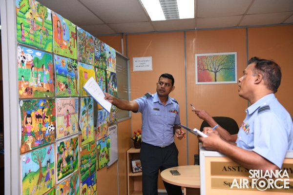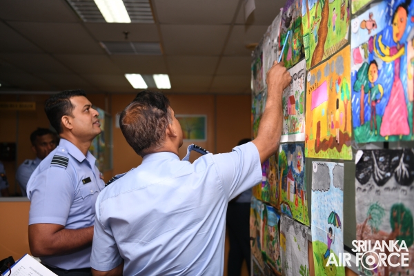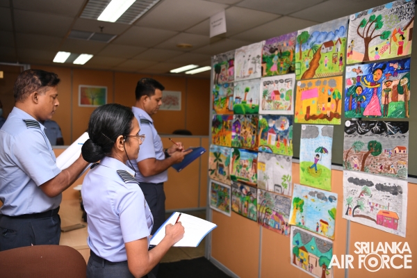 Nearly 500 paintings of contestants representing all of the SLAF establishments' entries were finalized in the art competition at Air Force Headquarters last month. A panel of judges chaired by the Air Secretary, Group Captain Anuruddha Wijesiriwardena, selected the winners.