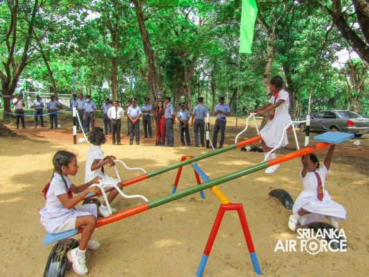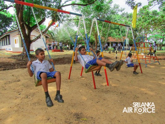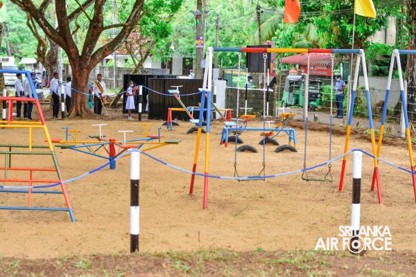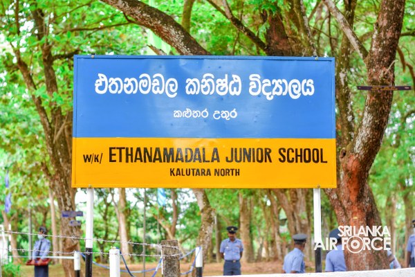 Newly constructed school perimeter fence, children’s park and volleyball court were handed over to the children of Ethanamadala Junior School by the Commanding Officer SLAF Station Katukurunda, Group Captain Asitha Hettiarachchi. The renovation and colour washing of all the classrooms including the school ‘Budu Medura’ were completed under the supervision of the Commanding Officer. The Stationery and paint items were also donated to the children to complete their art works in several class rooms by SLAF Station Katukurunda.
