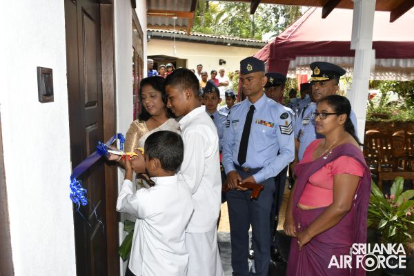 A house constructed by the SLAF Seva Vanitha Unit was handed over to Flight Sergeant Thennakoon TMSP (Armament SP I) at the House Warming Ceremony which is held today (14 November 2022) at Ellegama, Welimada under the auspicious of the Chairperson of SLAF Seva Vanitha Unit, Mrs. Charmini Pathirana.