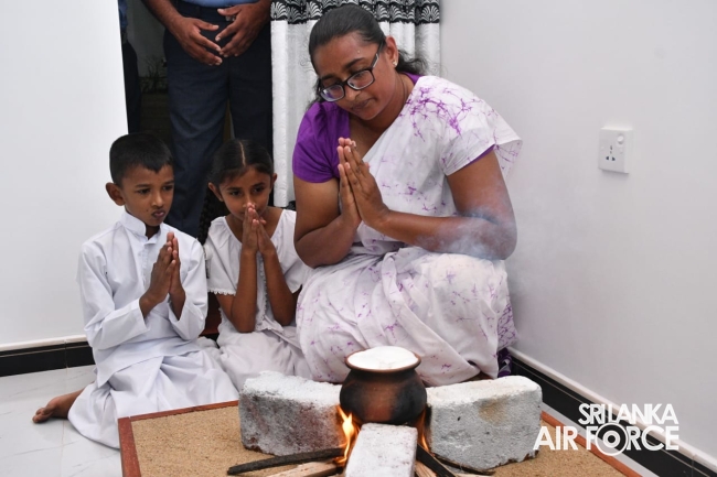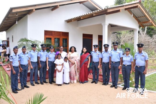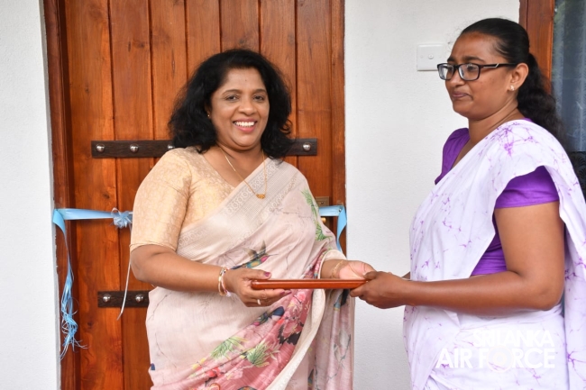 In honour of International Women's Day, the first house project under this initiative was presented to the family of Corporal Bandara NMCN (Deceased), yesterday (04 March 2023). The Chairperson of the SLAF Seva Vanitha Unit, Mrs. Charmini Pathirana, graced the housewarming ceremony that has been held in Mahapaladikulama, Anuradhapura.