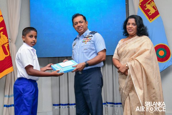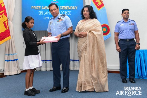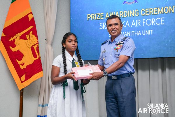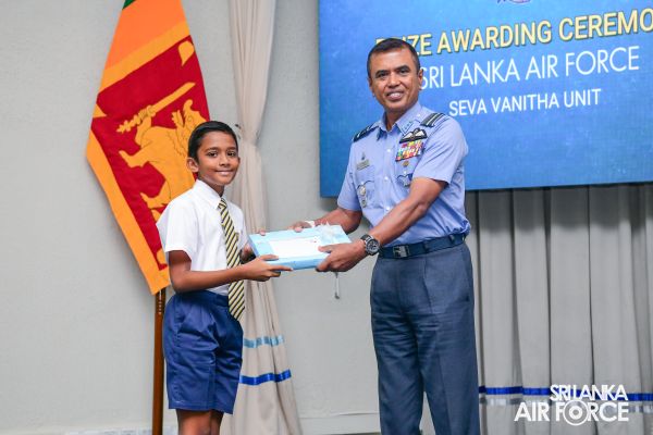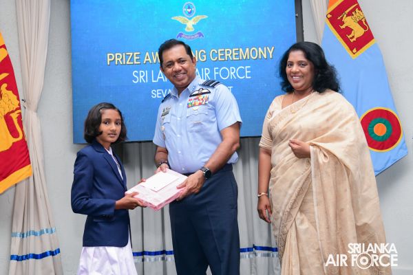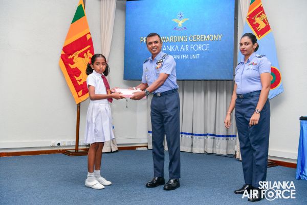The Commander and the Chairperson congratulated and expressed their best wishes to students who performed well in their examinations during the ceremony. Chief of Staff, Deputy Chief of Staff, Members of the Air Force Board of Management, Commanding Officer Sri Lanka Air Force Station Colombo, Air Secretary, Secretary Seva Vanitha Unit, as well as the staff of the SLAF Seva Vanitha Unit and Parents of the Students were also present at the ceremony.
