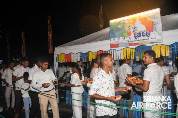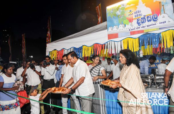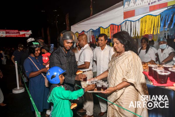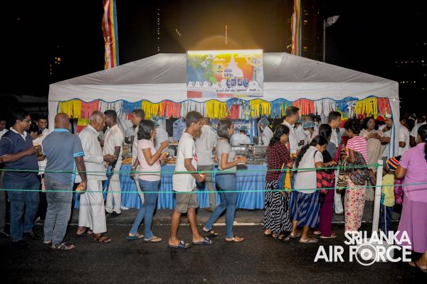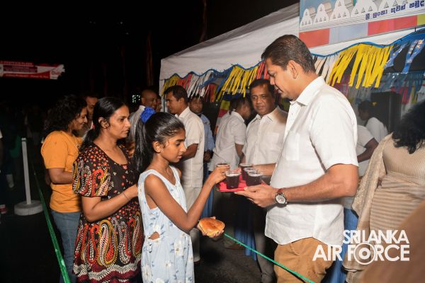 In addition to the “Vesak Bathi Gee Saraniya”, the SLAF Seva Vanitha Unit organized a “Sini Sambal Bun and Ginger Plain tea Dansla” in front of the Rifle Green Grounds at SLAF Station Colombo. This event was organized under the supervision of Chairperson SLAF Seva Vanitha Unit Mrs. Charmini Pathirana and materialized with the assistance of Station Colombo.