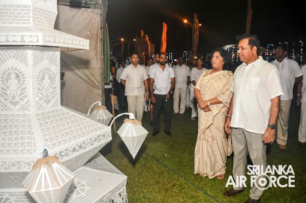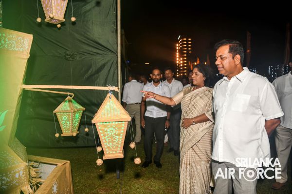 The event commenced with the Chief Guest switching on the lights of the SLAF Vesak Kalapaya and Commander of the Air Force and Chairperson of the SLAF Seva Vanitha Unit visited the creative Air Force Vesak Lanterns display at the grounds.