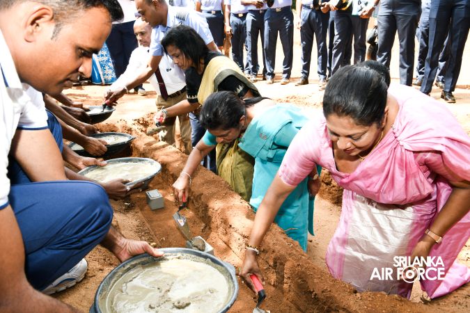 The foundation stone laying ceremony for the construction of a new classroom building at Welamitiyawa Primary School, Galewela was held today (16 July 2025). The foundation stone was laid by the Chairperson of the SLAF Seva Vanitha Unit, Mrs. Krishanthi Edirisinghe, together with the President of the SLAF Seva Vanitha Unit at Station Sigiriya, Mrs. Sandya Premawardane, Principal, Mr. Priyashantha Ukgalla and Kusum Wickramarathne, teacher of the Welamitiyawa Primary School.