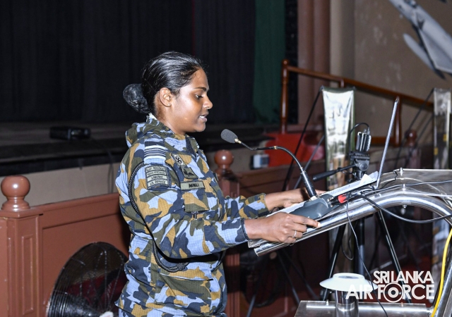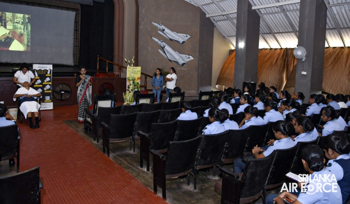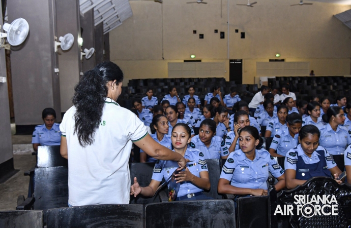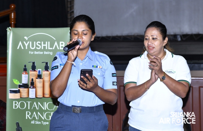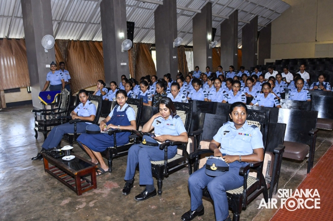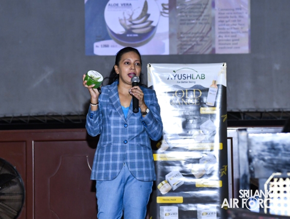 The programme was conducted by the Manager of Ayush Lab, Mrs. Shashika Rathnasiri, who shared valuable insights on personal development and self-confidence. She delivered an informative presentation on beauty culture and self-grooming, educating Lady Officers and Airwomen on enhancing personal appearance and personality. Her engaging lecture captivated the audience with its rich content and practical guidance.