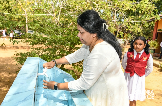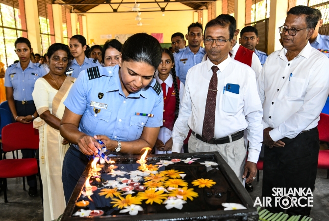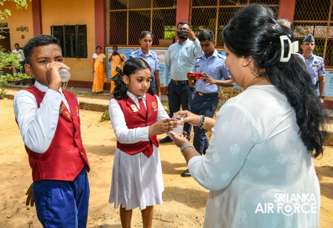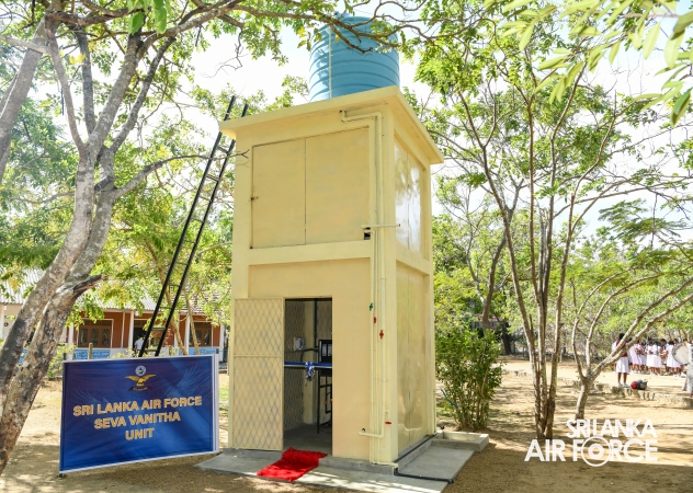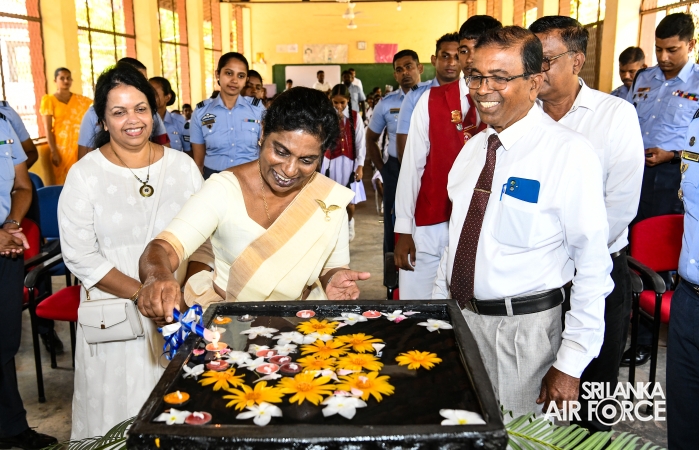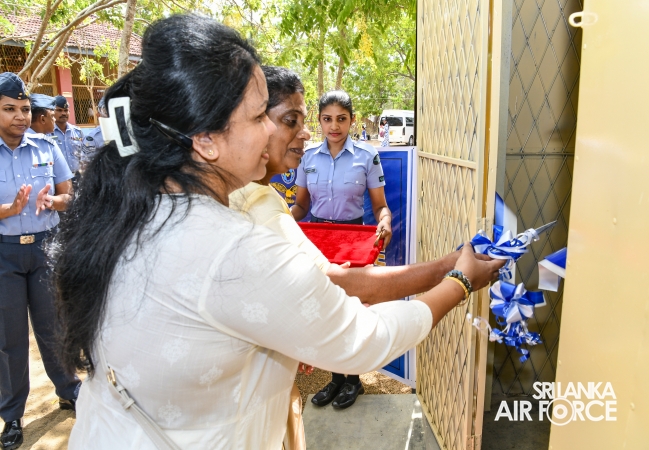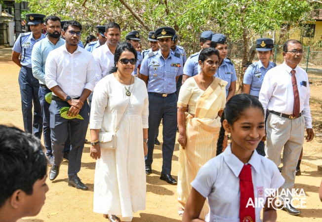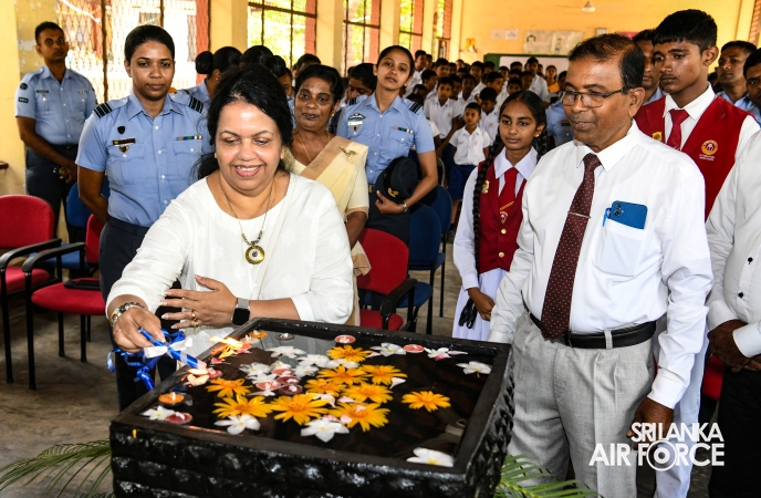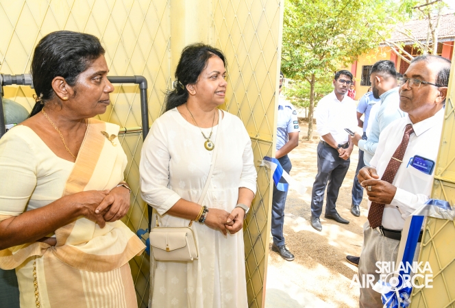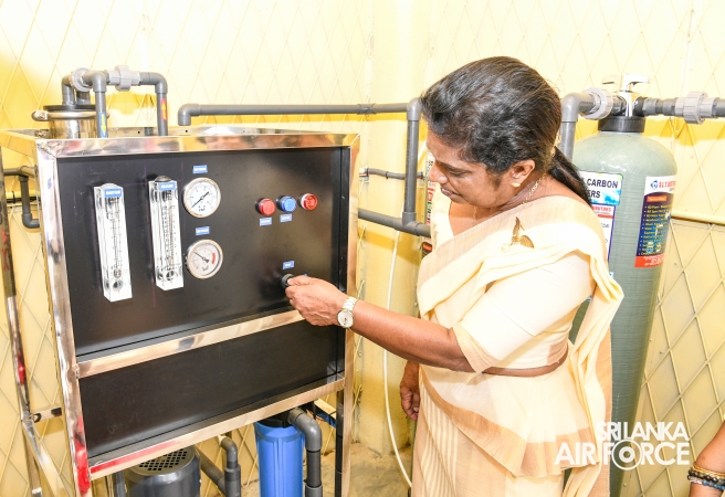 The Chairperson of the SLAF Seva Vanitha Unit, Mrs. Krishanthi Edirisinghe, accompanied by the Commanding Officer of SLAF Station Weerawila, Group Captain Nalaka Wanasinghe participated in the ceremonial opening of the newly established Reverse Osmosis (RO) Water Treatment Plant yesterday (02 September 2025) at Thissapura Kanishta Vidyalaya, Weerawila. Reading books were also donated to deserved schoolchildren as part of an educational upliftment initiative during the ceremony.