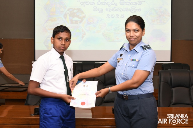 A total of 314 children participated in the competition, and winners were selected from each age category by eminent artists in contemporary Sri Lankan society, Mrs. DUS Gunasena and Mr. WDRI Wijethunga. The prize-giving ceremony was held today (31 October 2025) at the Air Force Headquarters.