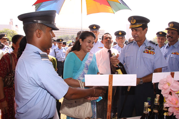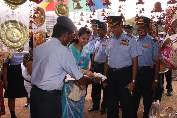 The annual Air Force Avurudu Pola organized by the Directorate of Welfare was declared open by the Acting Chief of Defense Staff and Commander of the Air Force Air Chief Marshal Roshan Gunathilaka this morning 6th April 2010. It was held at the Rifle Green Grounds SLAF Station Colombo.The “Pola” is organized each year with the aim of providing Air Force personnel and their families with house hold requirements, garments and gift items at concessionary prices during the festive season. All SLAF Bases and stations book their stalls to sell items obtained from their respective areas. The Director Welfare Air Commodore Anura Silva coordinated and organized the event.
