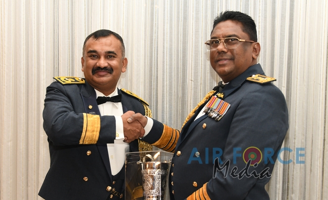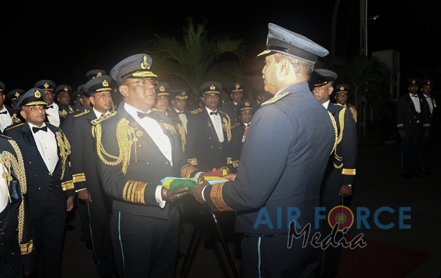 The outgoing Commander was accorded a Guard of Honour by the Colour Wing of the SLAF. After which the outgoing Commander addressed the entire Air Force for the very last time. At the conclusion of the ceremony, the outgoing Commander handed over the ceremonial baton symbolizing the change of command in the Sri Lanka Air Force. The ceremony was attended by members of the Air Force Board of Management, Officers and Other Ranks at Air Force Headquarters and SLAF Station Colombo.