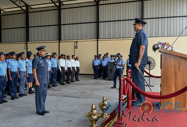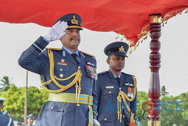 The Commander of the Air Force, Air Marshal Sumangala Dias conducted the Commander's Inspection of Sri Lanka Air Force Base Vavuniya today (7 June 2019). Prior to the inspection proper, the Commander reviewed the Commander's Inspection Parade commanded by the Base Commander of SLAF Base Vavuniya, Air Commodore LH Sumanaweera.