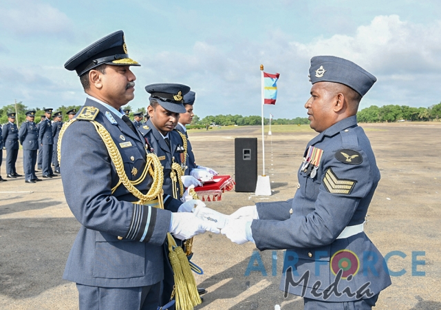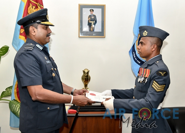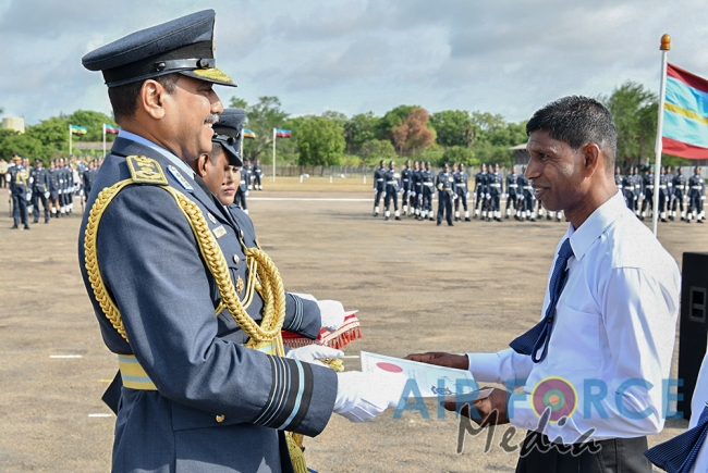The Commander awarded Commendations to Sergeant Rathnayake RMSB (Accounts Assistant), Sergeant Munasinghe SC (Air Radio Technician), Mr. JT Bandara (Civilian Attendant), Mr. AG Sumathipala (Civilian) and Mr. TM Wijewardana (Civilian) in recognition of their outstanding meritorious services towards the activities of the Station and the entire Air Force.