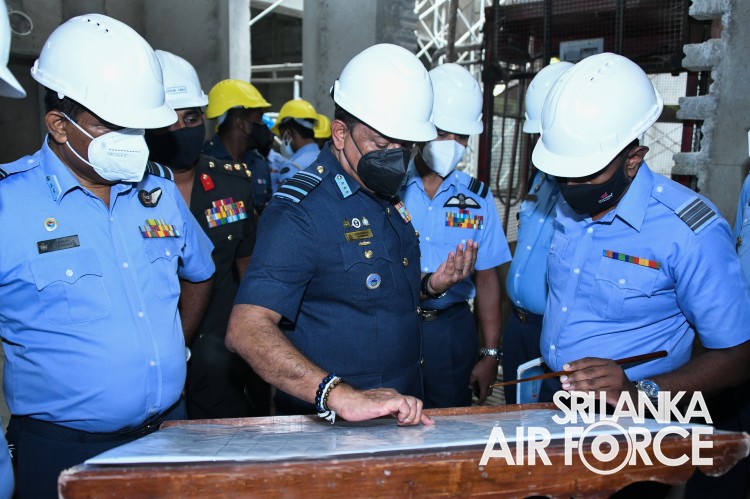 ගුවන් හමුදාපතිතුමන් අකුරේගොඩ ආරක්ෂක මූලස්ථාන සංකීර්ණයේ අලුතින් ඉදිකරමින් පවතින ගුවන් හමුදා මුලස්ථානයේ නිරීක්ෂණයක