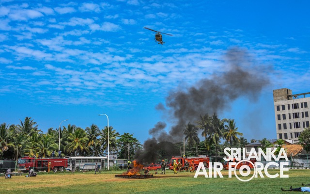 ශ්රී ලංකා ගුවන් හමුදාව වැල්ලවත්තේදී ගුවන් යානාවක් කඩා වැටීමේ දී ක්ෂණික ව ක්රියාකිරීමේ අභ්යාසයක් පවත්වයි.