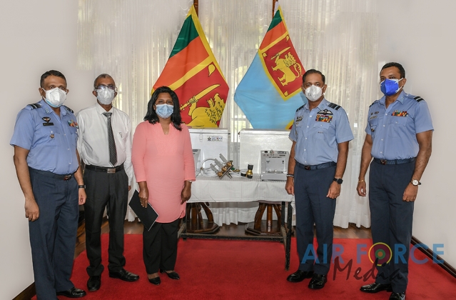 ශ්රී ලංකා ගුවන් හමුදාව විසින් නිෂ්පාදනය කරනු ලබන තාප හියුම්කරණ ඔක්සිජන් චිකිත්සා ඒකකයන් නිෂ්පාදනය කිරිමට අවශ්යය උපකරණ තොගයක් ගුවන් හමුදාධිප...
