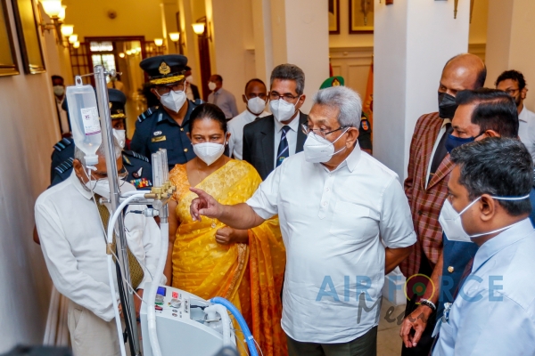 ශ්රී ලංකා ගුවන් හමුදාව විසින් නිෂ්පාදනය කරන ලද තාප හියුම්කරණ ඔක්සිජන් චිකිත්සා ඒකකයක් ඊයේ (2021 මැයි 12 වන දින) ජනාධිපති කාර්යාලයේදී ජනාධිපති ගරු ග...