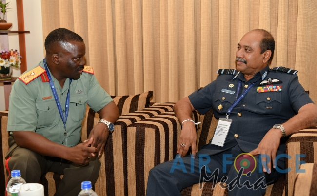 ඉන්දියාවේ නවදිල්ලි හි පිහිටි නැබීබියානු තානාපති කාර්යාලයේ ආරක්ෂක නියෝජිත බ්රිගේඩියර් ටයිටස් සයිමන් මහතා හා ශ්රී ලංකා ගුවන් හමුදාධිපති තුම...