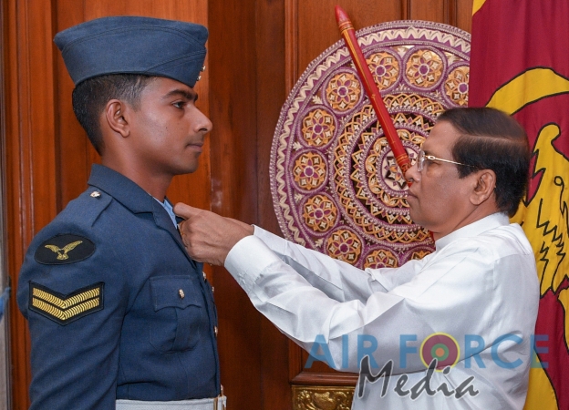ශ්රී ලංකා ප්රජාතාන්ත්රික සමාජවාදී ජනරජයේ අතිගරු ජනාධිපති සහ සන්නද්ධ හමුදා සේනාධිනායක මෛත්රිපාල සිරිසේන මැතිතුමන් අතින් ගුවන් හමුදා භට...