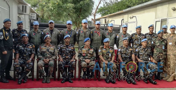 එක්සත් ජාතීන්ගේ සංවිධානයේ දකණු සුඩානයේ බලකා අණදෙන නිළධාරී ලුතිනන් ජෙනරාල් ශයිලේෂ් සඩාෂිව් තිනයිකර් (ඉන්දියානු) මහතා තම කණ්ඩායම සමග 2019 ජූලි මස 26 වන ...