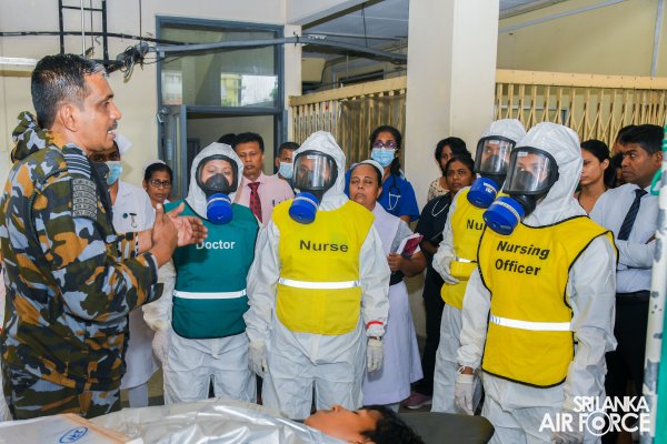 ශ්රී ලංකා ගුවන් හමුදාව කොළඹ ජාතික රෝහල සමග එක්ව රසායනික, න්යෂ්ටික සහ පුපුරණ ද්රව්ය ප්රහාරයකදී ක්රීයා කළ යුතු ආකාරය පිළිබද පුහුණු අභ්යාසයක් සිදු කරයි