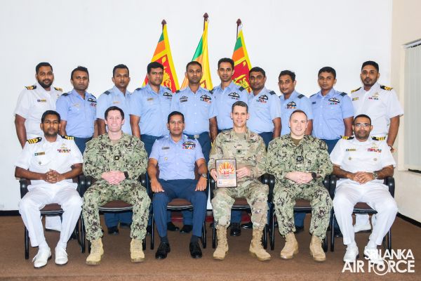 එක්සත් ජනපද ආරක්ෂක සාමාජිකයින් ශ්රී ලංකා නාවික හමුදා සහ ශ්රී ලංකා ගුවන් හමුදා නිලධාරීන් සමග දැනුම බෙදාගැනීමේ සැසියක් පවත්වනු ලබයි.