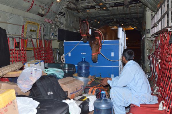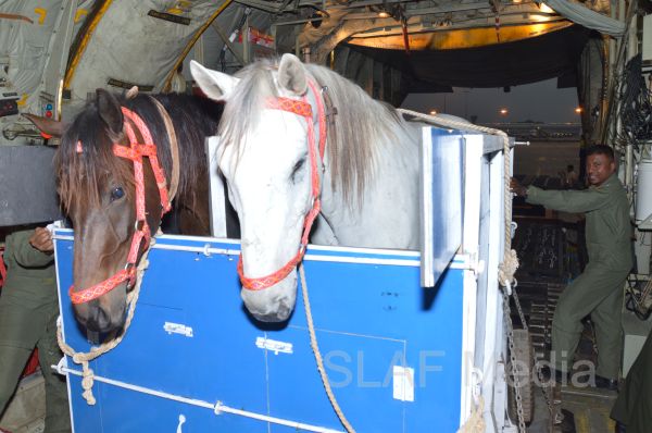 ගුවන් හමුදා සී.130 ගුවන් යානයක් ආධාරයෙන් අශ්වයින් සය දෙනෙකු මෙරටට ප්රවාහනය කෙරේ.