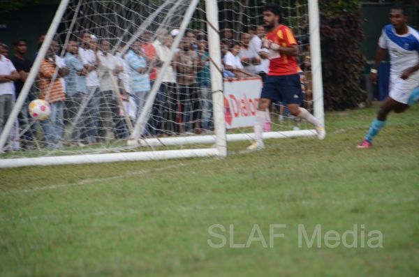 විදෙස් ක්රීඩකයින් තිදෙනෙකුගේ සහය ලබා ගන්නා සොලිඞ් පාපන්දු කණ්ඩායම තියුනණු තරඟයක් ලබා දුන් අතර තරඟයේ පළමු අර්ධයේ 29 වෙනි මිනිත්තුවේදී නායක ගුවන් භට ජනක චමින්ද විසින් පළමු ගෝලය ලබා ගන්නා ලදී. පළමු අර්ධයේදී 1-1 ක් ලෙසින් සම තත්වයෙන් පසුවූ තරඟයේ දෙවන අර්ධයේ 34 මිනිත්තුවේදී ගුවන් හමුදාවේ නායක ගුවන් භට ඩිල්ෂාන් විසින් දෙවන ගෝලය වාර්තා කරන ලද්දේ අවසන් මහා තරඟයට පාර කපමිනි.