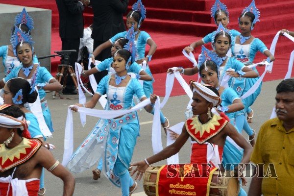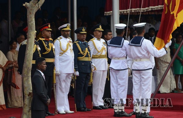 ජාතික ධජය එසවීමෙන් නිදහස් දින සැමරුම් උත්සවය ආරම්භ කරන ලදී. අනතුරුව ති්රවිධ හමුදාධිපතිවරුන් විසින් ජනාධිපතිතුමන්ව විශේෂ පීඨිකාව වෙත කැඳවාගෙන යනුලැබූ අතර පාසල් සිසුවියන් 25 දෙනෙකු විසින් ජයමංගලගාථා ගායනා කරන ලදී.