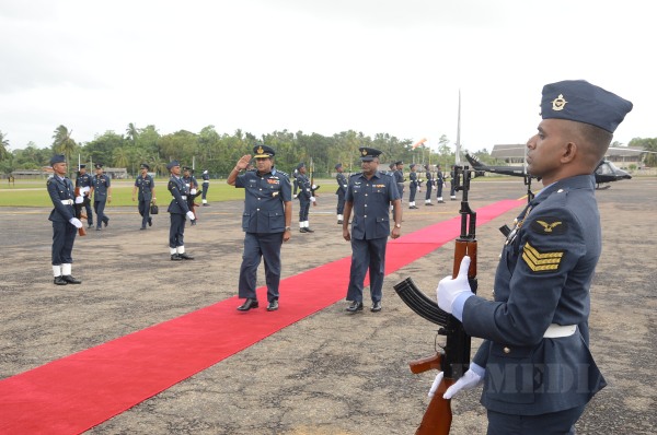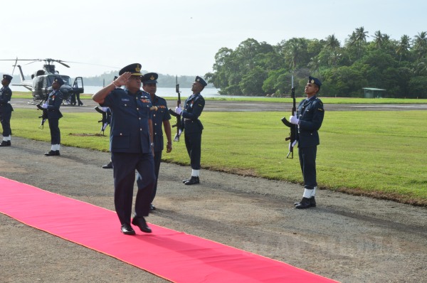 ශ්රී ලංකා ගුවන් හමුදාව කටුකුරුන්ද කඳවුරේදී එහි අණදෙන නිලධාරී විංග් කමාන්ඩර් මොහාන් බාලසූරිය විසින් ගුවන් හමුදාධිපති තුමන්ව පිළිගන්නා ලැබූ අතර එහිදීද මාර්ග පෙළ කණ්ඩයක් මගින් ගුවන් හමුදාධිපති තුමන් වෙත උත්තමාචාර පුද කරන ලදී.