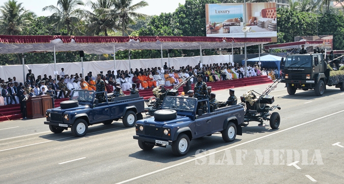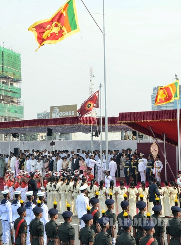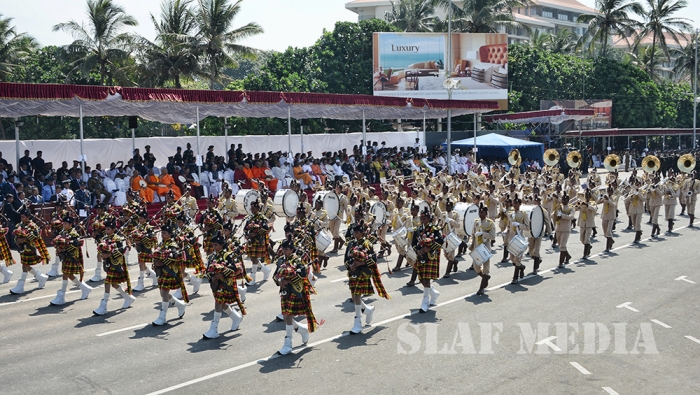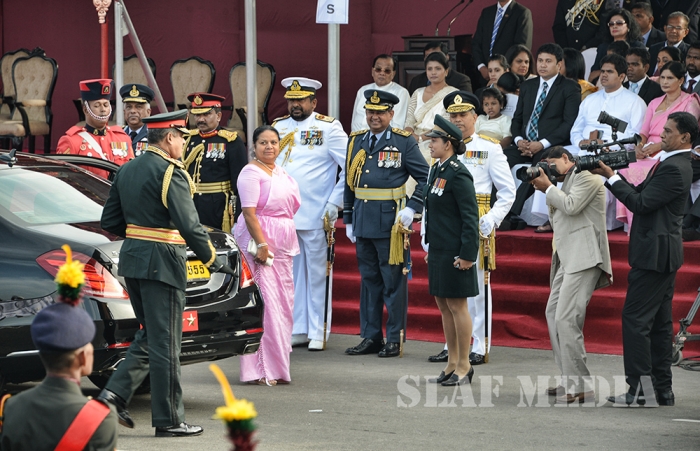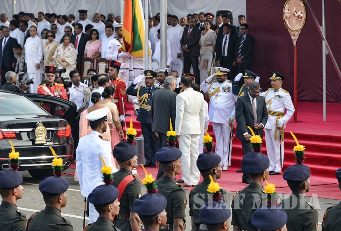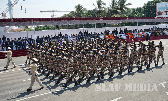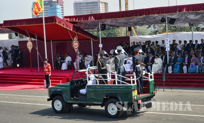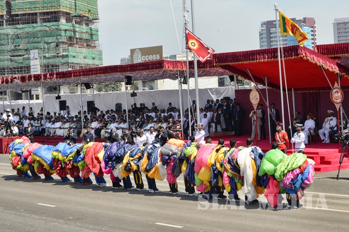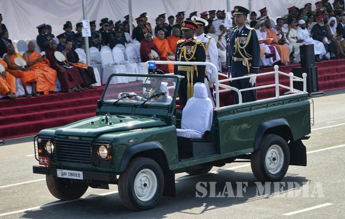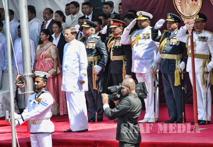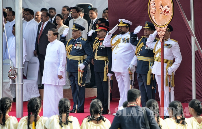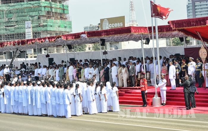 අතිගරු ජනාධිපතිතුමන් විසින් මගුල් බෙර හා සක් හඩ මධ්යයේ ජාතික කොඩිය ඔසවමින් උත්සවයේ වැඩ කටයුතු ආරම්භ කල අතර ඉන්පසුව අතිගරු ජනාධිපතිතුමන් හා ත්රිවිධ හමුදාපතිවරුන් , පොලිස්පතිතුමන් රැදී සිටි විශේෂ පීඨිකාව ඉදිරිපස සිට පාසල් සිසුවියන් 25 දෙනෙකු විසින් ජාතික ගීය සහ තෙරුවන්ගේ අශිර්වාදය ප්රාර්ථනා කරමින් 'ජය මංගල ගාථා' සහ 'දේවෝ වස්සතු කාලේන' යන කවි පන්තිය ද ගායනා කරන ලදී.