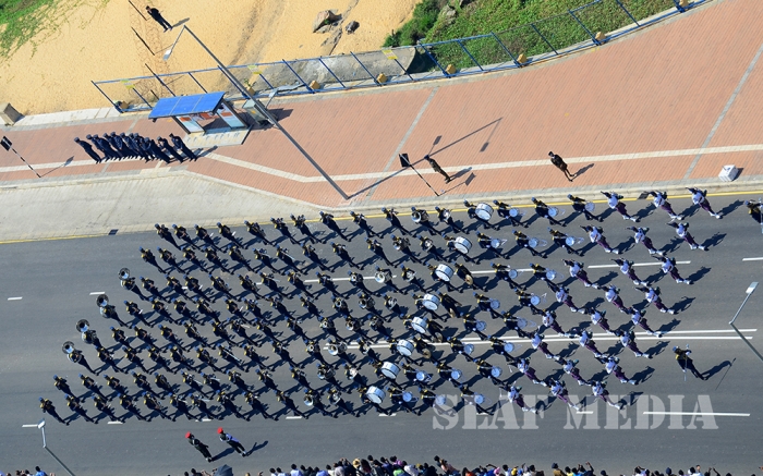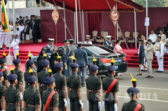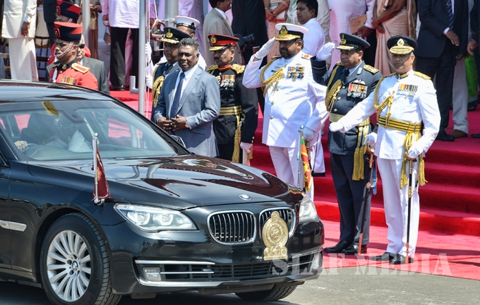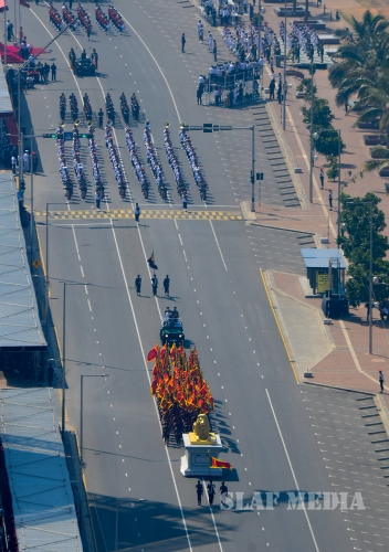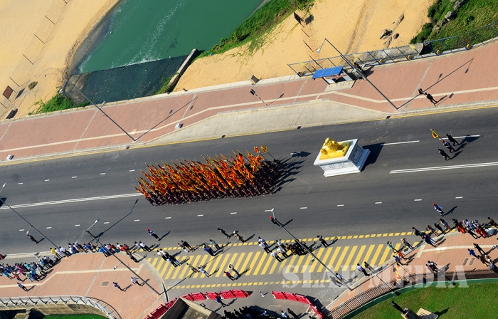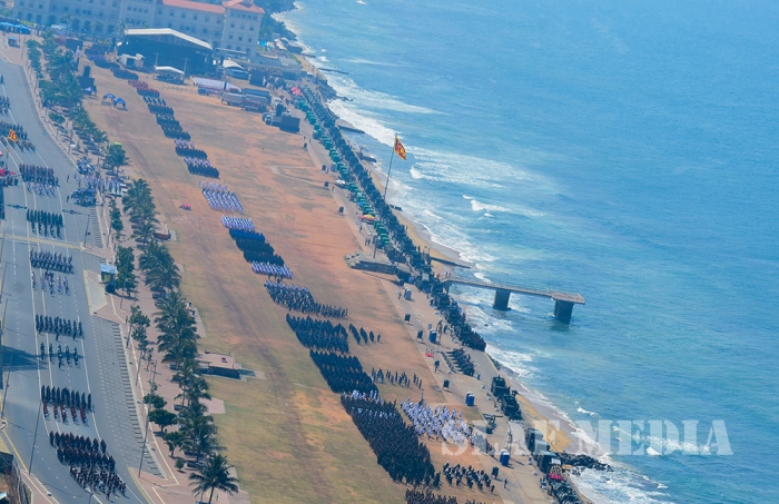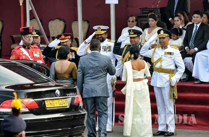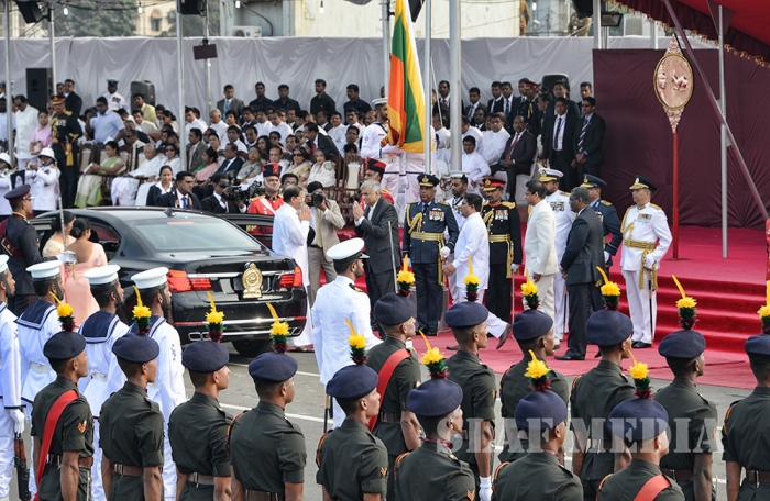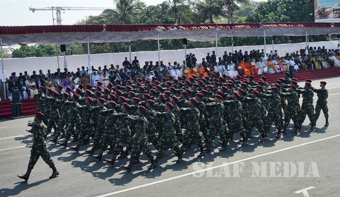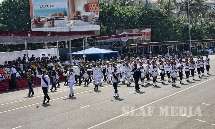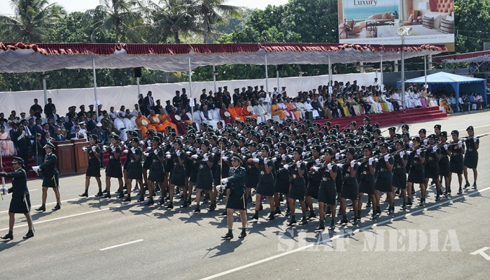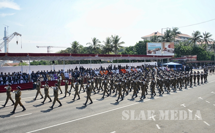 අතිගරු ජනාධිපතිතුමන් විසින් මගුල් බෙර හා සක් හඩ මධ්යයේ ජාතික කොඩිය ඔසවමින් උත්සවයේ වැඩ කටයුතු ආරම්භ කල අතර ඉන්පසුව අතිගරු ජනාධිපතිතුමන් හා ත්රිවිධ හමුදාපතිවරුන් , පොලිස්පතිතුමන් රැදී සිටි විශේෂ පීඨිකාව ඉදිරිපස සිට පාසල් සිසුවියන් 25 දෙනෙකු විසින් ජාතික ගීය සහ තෙරුවන්ගේ අශිර්වාදය ප්රාර්ථනා කරමින් 'ජය මංගල ගාථා' සහ 'දේවෝ වස්සතු කාලේන' යන කවි පන්තිය ද ගායනා කරන ලදී.