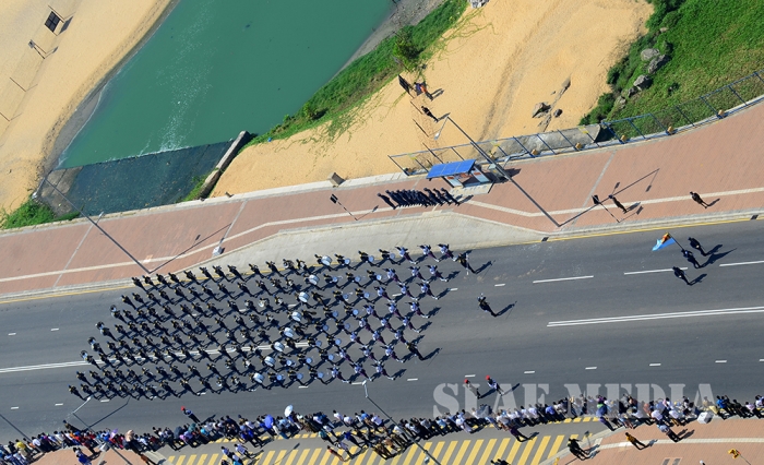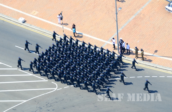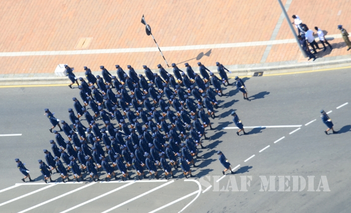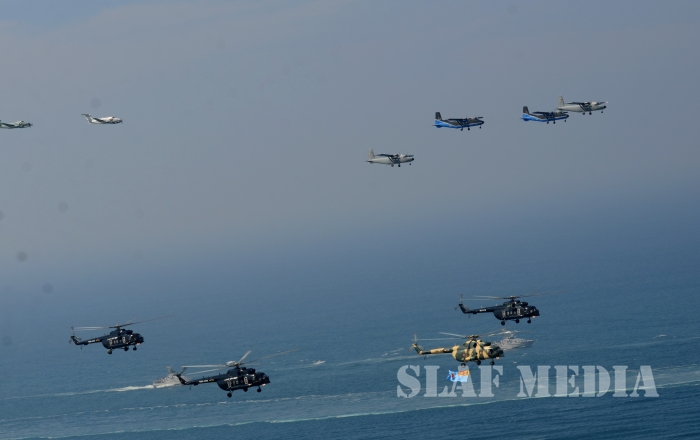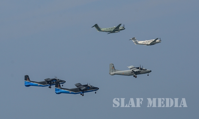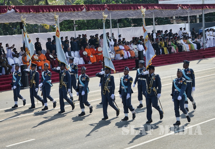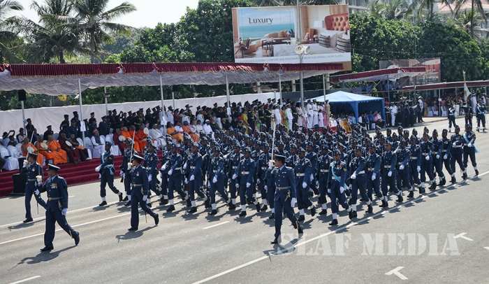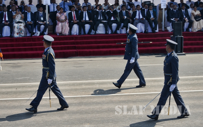 ශ්රී ලංකා ගුවන් හමුදාවේ ගුවන්යානා ආචාර පෙළපාලියේ සම්බන්ධීකාරක ලෙස එයාර් කොමඩෝර් සුදර්ශන පතිරණ කටයුතු කරනු ලැබූ අතර එහි මගපෙන්වන්නා ලෙස විංග් කමාන්ඩර් අමිත ජයමහ ද ගුවන් යානා පාලන නිළධාරී ලෙස විංග් කමාන්ඩර් එස් රුවන් පතිරණ ද කටයුතු කරනු ලැබීය. එම ගුවන්යානා පෙළපාලිය බෙල් 212 වර්ගයේ හෙලිකොප්ටර් යානයක් , බෙල් 412 වර්ගයේ හෙලිකොප්ටර් යානා 03ක් , එම් අයි 17 වර්ගයේ ප්රවාහන හෙලිකොප්ටර් යානා 04ක් , Y - 12 ගුවන් යානා යානා 04ක් , බීච් ක්රාෆ්ට් වර්ගයේ යානා 02ක් , C- 130 වර්ගයේ යානයක් , ඇන්ටනෝව් 32 වර්ගයේ යානයක් , MA 60 වර්ගයේ යානයක් , K-8 වර්ගයේ ජෙට් ගුවන් යානා 03ක් , කෆීර් ගුවන් යානාවක් සහ F7 වර්ගයේ ප්රහාරක ජෙට් යානා 02ක් ඇතුලුව ගුවන් යානා 23කින් සමන්විත විය. සමස්ථ ගුවන් හමුදා ආචාර පෙළපාලියෙහි අණදෙන්නා ලෙස එයාර් කොමඩෝර් සම්පත් තුයියකොන්තා කටයුතු කල අතර පෙළපාලි අණදෙන්නා ලෙස විංග් කමාණ්ඩර් හියුමාල් ධර්මදාස කටයුතු කරන ලදී. ගුවන් හමුදා නිළධාරීන් 60 දෙනෙක් , ගුවන් භටයින් 720 දෙනෙක් සහ නිළධාරීන් 02 දෙනෙකු , ගුවන් භටයින් 275 දෙනෙකුගෙන් සමන්විත වූ තූර්්ය වාදක කණ්ඩායම් දෙකක් ජනාධිපතිතුමන්ට ආචාර කිරීම සදහා පෙළපාලියට එක්වීය.