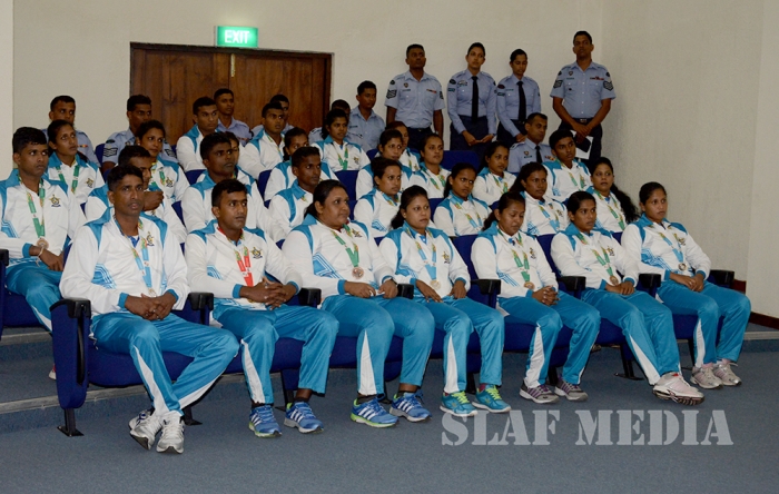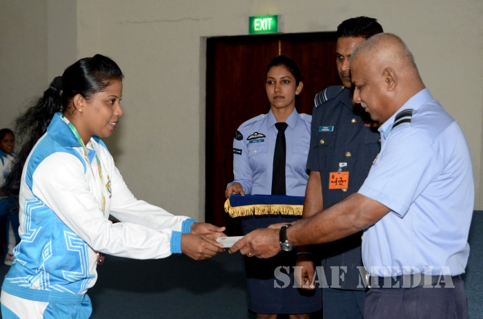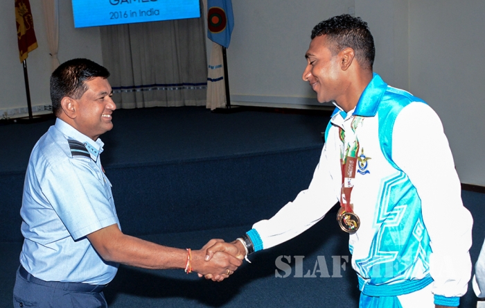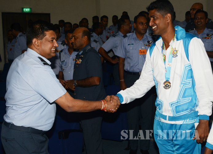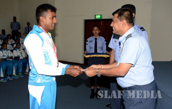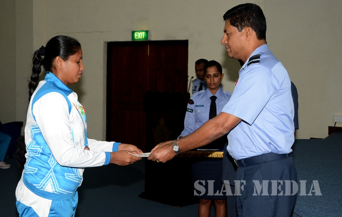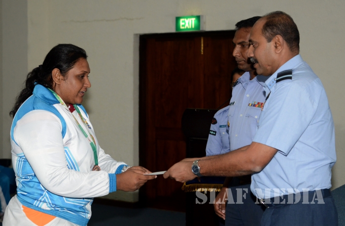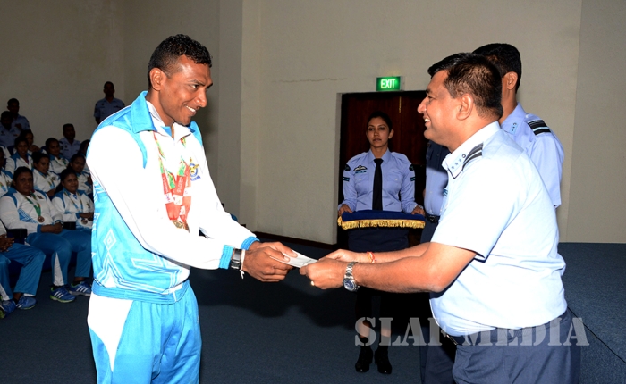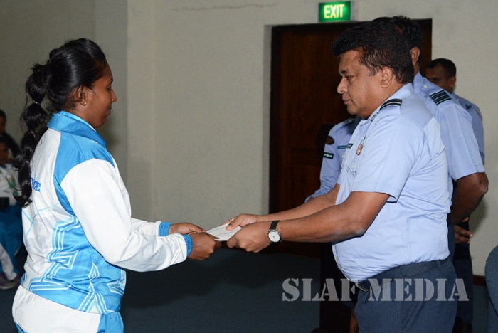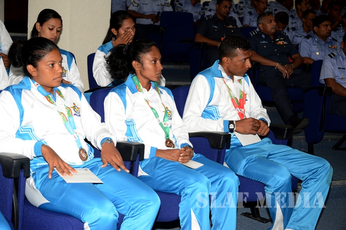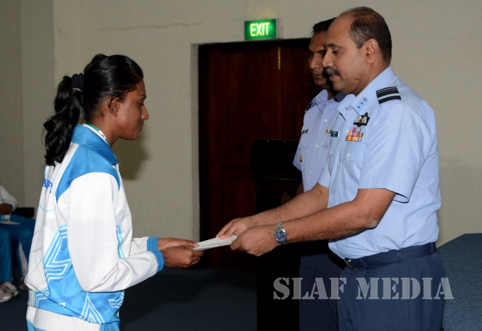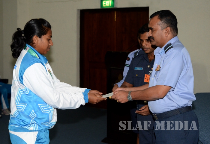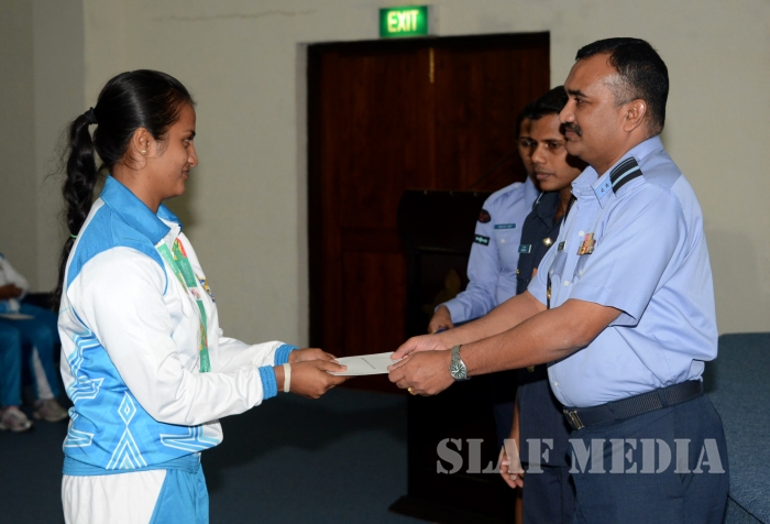12 වන දකුණු ආසියානු ක්රීඩා උළෙලේදී විශිෂ්ට දස්කම් දක්වමින් ගුවන් හමුදාවට කීර්තියක් අත් කරදුන් ගුවන් හමුදා ක්රීඩක ක්රීඩිකවන් හට ඔවුන්ගේ දක්ෂතා අගයමින් ශ්රී ලංකා ගුවන් හමුදාධිපති එයාර් මාර්ෂල් ගගන් බුලත්සිංහල මහතා විසින් සේවය උසස්වීම් හා මුදල් ත්යාග පිරිනැමීමේ උත්සවයක් කොළඹ ගුවන් හමුදා මූලස්ථානයේ දී 2016 පෙබරවාරි මස 18 වන දින පැවැත්විණ.