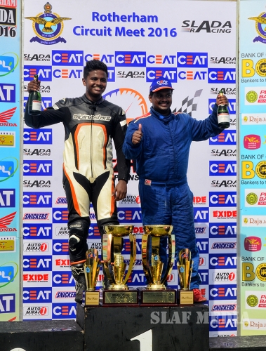 2016 රොදර්හැම් සර්කිට් මීට් මෝටර් රථ හා යතුරුපැදි ධාවන තරඟාවළියේ සමස්ථ යතුරු පැදි ධාවකයා ලෙස ප්රමුඛ සේසත් සම්මාන හිමුකරගනු ලැබූ අතර දක්ෂතම මෝටර් රථ ධාවකයා ලෙස උෂාන් පීරිස් සම්මාන හිමිකර ගන්නා ලදී.