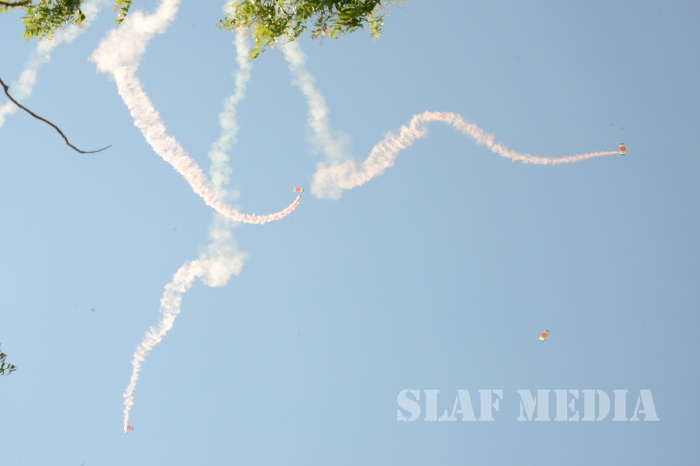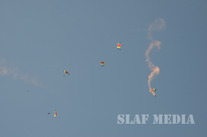 විසිරයාමේ පෙළපාලිය විචිත්රවත් කරමින් සංදර්ශනාත්මකව ගුවන් හමුදා (ස්කයි ඩ්රයිවර්ස්) විශේෂ පැරෂුට් කණ්ඩායම අඩි 6000ක ඉහල අහසේ සිට නිදහසේ පහලට වැටෙමින් ඉදිරිපත් කල සුවිශේෂී පැරෂුට් පිම් ගුවන් හමුදා තූර්යවාදක කණ්ඩායම සහ ගුවන් හමුදා වර්ණ බලඝණය විසින් ඉදිරිපත් කල සරඹ හා තූර්යවාදන සංදර්ශනය කාගේත් නෙත් සිත් පැහැර ගන්නා ලදී.