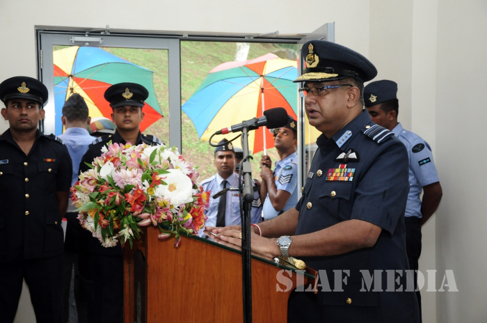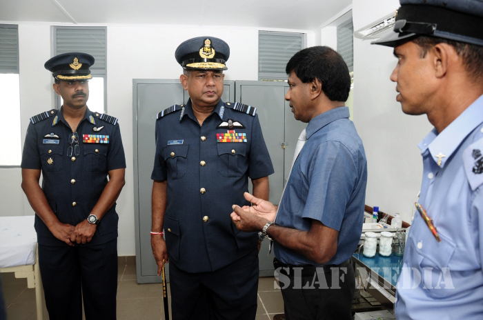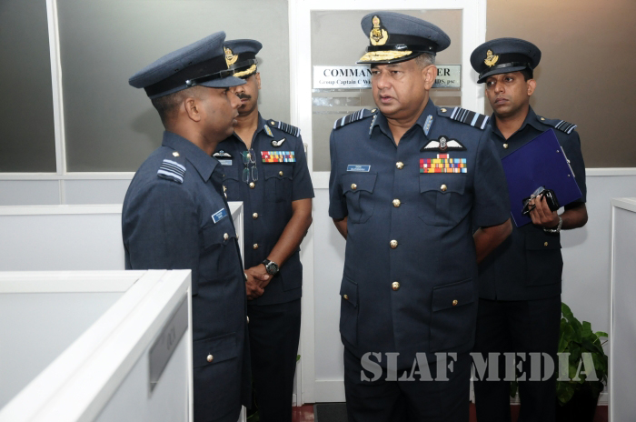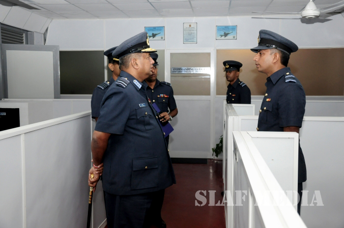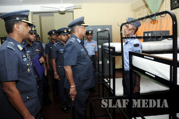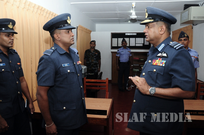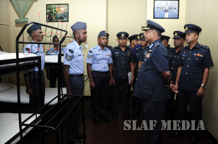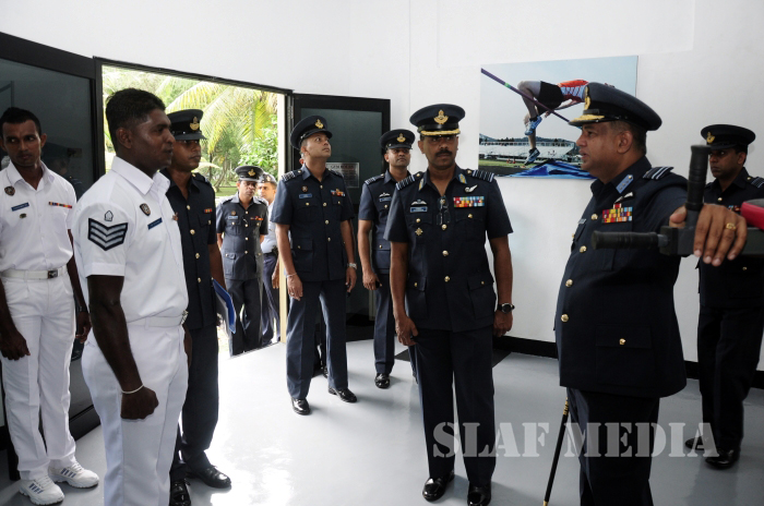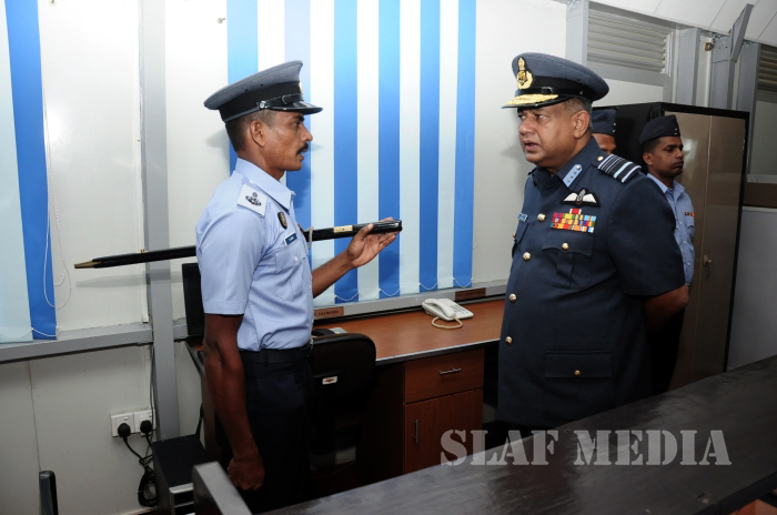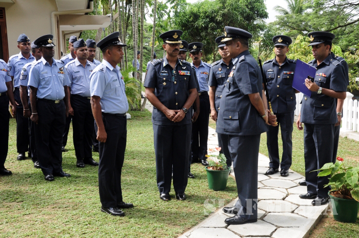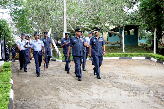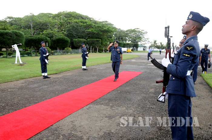මාර්ග පෙළ ඛණ්ඩයක ආචාරය මධ්යයේ, කඳවුරු අණදෙන නිළධාරී ගෲප් කැප්ටන් චමින්ද වික්රමරත්න විසින් ගුවන් හමුදාධිපතිතුමන් කඳවුරු පරිශ්රය වෙත පිළිගන්නා ලදී