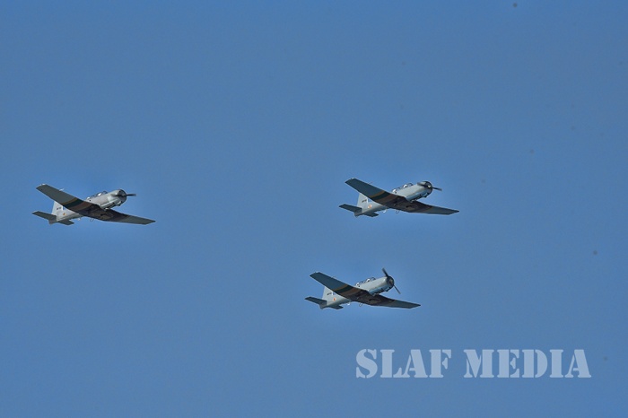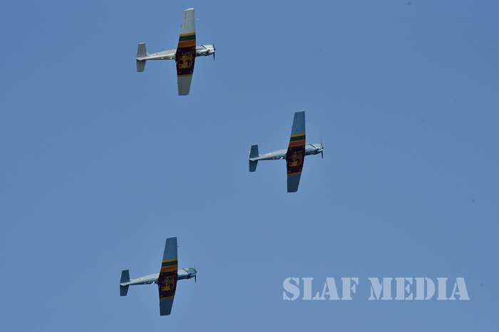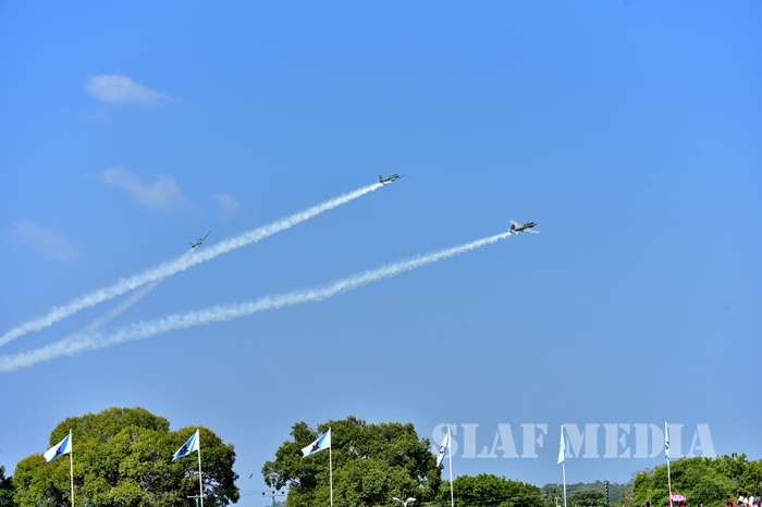 මෙම විසිරයාමේ පෙලපාලිය අභිමානවත් බව තවත් වැඩි කරමින් ශී්ර ලංකා ගුවන් හමුදා අංක 01 පියාසර පුහුණු පක්ෂාංගය මගින් පැමිණ සිටි සියන්දා දෙනා අමන්දානන්දයට පත්කරමින් ගුවන් කරනම් සංදර්ශනයක් ඉදිරිපත් කරන ලදී. ඉන් අනතුරුව ශී්ර ලංකා ගුවන් හමුදා තූර්්ය වාදක කණ්ඩායම සහ ගුවන් හමුදා වර්ණ පක්ෂාංගය එක්ව විචිත්රවත් සරඹ සංදර්ශනයක් ද ඉදිරිපත් කරන ලදී.