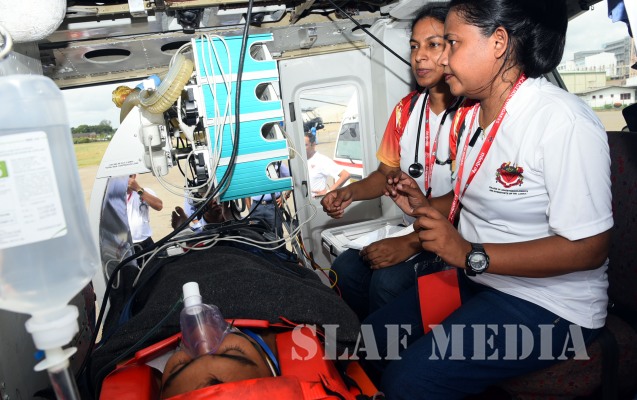 ශ්රීූ ලංකා ගුවන් හමදාව යුධ සමයේ විවිධ අවස්ථාවන්හිදී රෝගීන් ප්රවාහනය කරමින් ජීවිත බේරා ගැනීමේ කටයුතු රැුසක් සිදු කරන ලද අතර එම මෙහෙයුම් මගින් හමුදා සාමාජිකයින් මෙන්ම සිවිල් පුද්ගලයින් ගේ ජීවිත බේරාගැනීම සිදු කරන ලදීග මේ අනුව ශ්රී ලංකා ගුවන් හමුදාව ගුවන් මගින් රෝගීන් ප්රවාහනය කිරීම සිදු කිරීමේ ප්රධාන කාර්ය භාරයක් ඉටකරනු ලබන අතර අසාධ්ය තත්වයේ පසුවන රෝගීන් ගුවන් මගින් ප්රවාහනය කිරීම සඳහා ගුවන් වෛද්ය කට්ටලයක් සවිකරන ලද බෙල් හොලිකෝපටරයක් භාවිතා කරනු ලබයි.