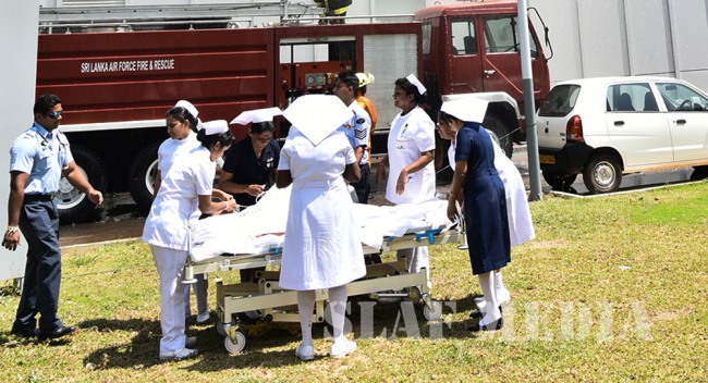 කොළඹ කදවුරුගිනි නිවීමේ ඒකකයේ ප්රධානී ස්කොඩ්රන් ලීඩර් ආර්එන් ඩී සේනාධීර ඇතුළු ශ්රී ලංකා ගුවන් හමුදා ගිනි නිවීමේ හා ජීවිත ගලවා ගැනීමේ භටයින් මෙම ගිනි නිවීමේ හා ජීවිත ගලවා ගැනීමේ අභ්යාසය සඳහා සහභාගී වූහග ගුවන් හමුදා ප්රධාන ගිනි නිලධාරී ස්කොඩ්රන් ලීඩර් සීපී හෙට්ටිආරච්චිගේ අධීක්ෂණය යටතේ මෙම අභ්යාසය පවත්වන ලදී.