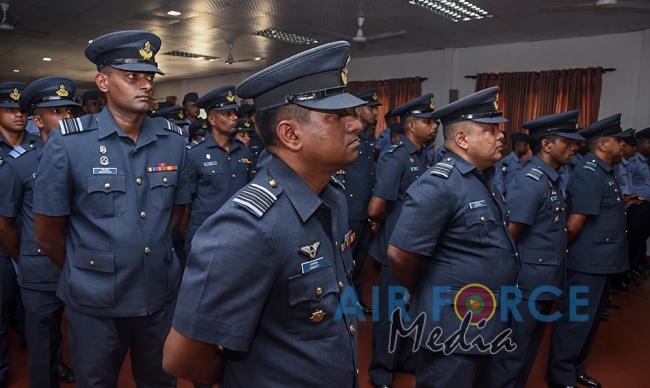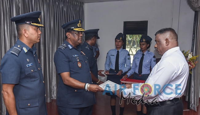 ශී්ර ලංකා ගුවන් හමුදාව වෙනුවෙන් දැක්වූ පුර්ණකාලීන දායකත්වය වෙනුවෙන් බලපන්ති සැරයන් ජයසිංහ වීකේඑල්සී (අවි ආයුධ ශිල්පි) කෝප්රල් මීරියගල්ල එම්ඩීඑස්එස් (මෙහෙයුම් භූමි) සිවිල් සේවක එච් ඩී සිරිපාල මහතා සහ එම් එස් ප්රසන්න කුමාර මහතා ගුවන් හමුදාධිපති සම්මානයෙන් පිදුම් ලැබීය.