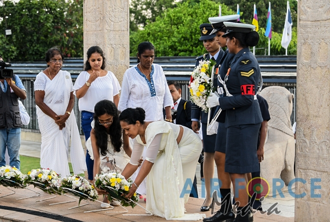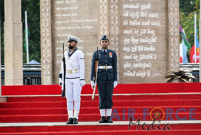 ආරක්ෂක මාණ්ඩලික ප්රධානී අද්මිරාල් රවින්ද්ර විජේගුණරත්න, යුධ හමුදාධිපති ලුතිනන් ජෙනරාල් මහේෂ් සේනානනායක, නාවික හමුදාධිපති වයිස් අද්මිරාල් පියල් දි සිල්වා සහ ගුවන් හමුදාධිපති එයාර් මාර්ෂල් කපිල ජයම්පති යන මහත්වරුන් විසින්ද මියගිය රණවිරුවන් සිහිකරමින් පුෂ්පෝපහාර පුදකරන ලදී.